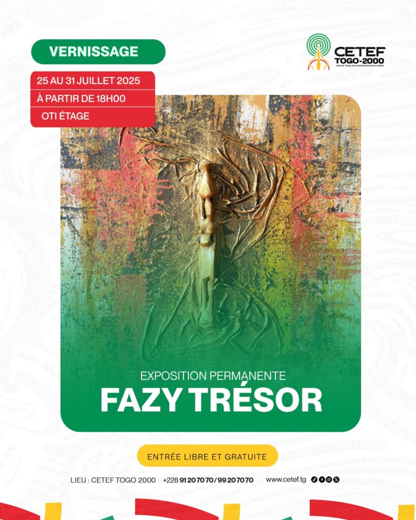 A partir de 17h Venez vivre le théâtre SICUT représenté par la Paroisse Notre-Dame de la Rédemption de bè klikame et à 18h, entrez dans l’univers de Fazy Trésor à travers un vernissage où vous découvrirez des tableaux riches en couleurs et émotions.