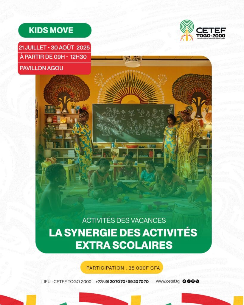 Dans cette période des vacances, le CETEF TOGO 2000 propose à la fois le ludique et l’instructif aux enfants.Du 21 juillet au 30 Aout 2025 au pavillon Agou, une synergie d’activités a été pensée pour édifier les plus jeunes et leur faire capitaliser le temps de libre dont ils disposent.Papa, maman, vous désirez faire bénéficier […]