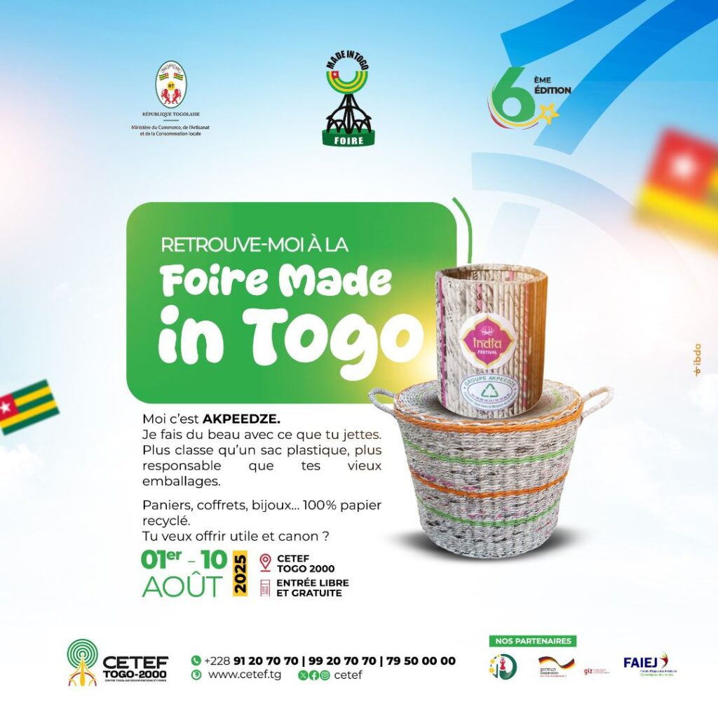 Transformer du vieux en neuf et recycler les articles usagers; c’est dans cet élan de préservation de l’environnement que AKPEEDZE se dévoile à vous. Des paniers, des coffrets, des accessoires de modes tous en matières recyclées, faites un tour au stand Akpeedze lors de la 6ème Foire Made In Togo au CETEF TOGO 2000 pour […]