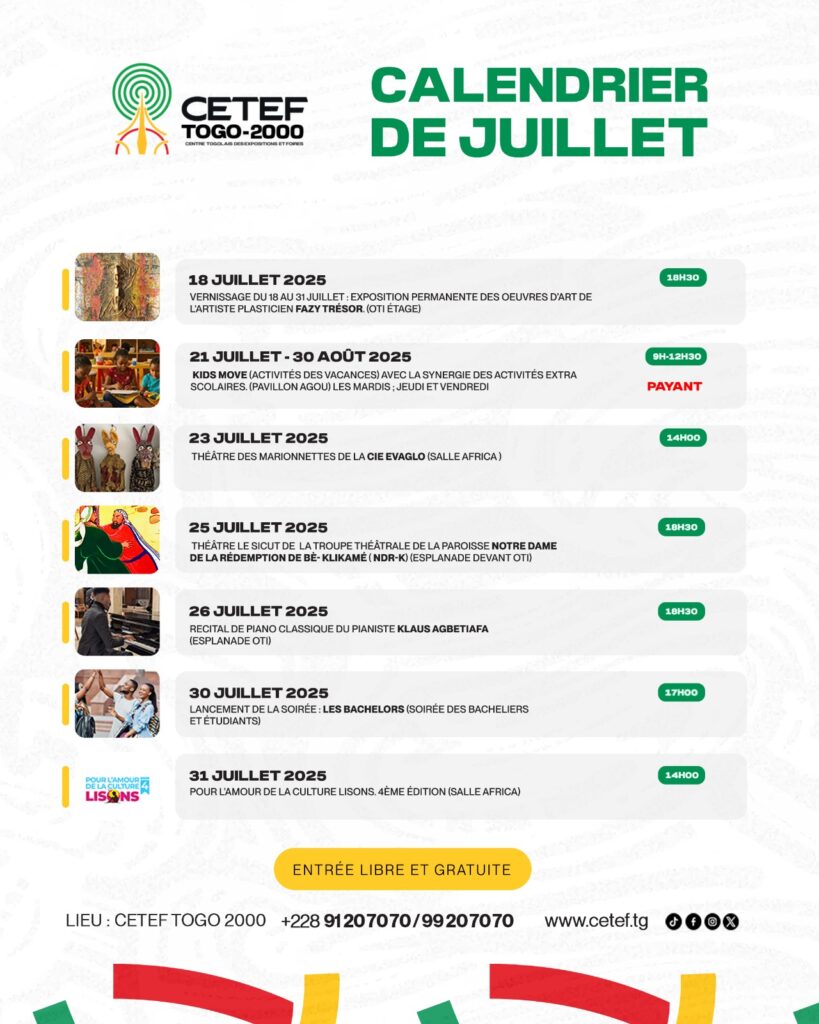 le CETEF TOGO 2000 vous dévoile son calendrier culturel du mois de Juillet 2025