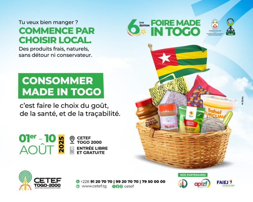Bien manger, c’est bien vivre… Et ça commence avec nos produits locaux : bons, sains, proches de nous. Le CETEF TOGO 2000 vous donne rendez-vous à la 6ème Foire Made in Togo qui se tiendra du 1er au 10 Août 2025 pour découvrir la diversité des produits que proposent les entrepreneurs locaux.