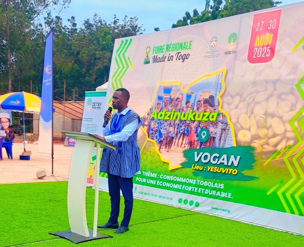 Ce 27 août 2025, sur le site de Yesuvito à Vogan, s’est tenue la cérémonie d’ouverture officielle de la Foire Made in TOGO Régionale de Vogan, organisée par le CETEF TOGO 2000 et couplée avec la fête traditionnelle Adjinukuza édition 2025.
