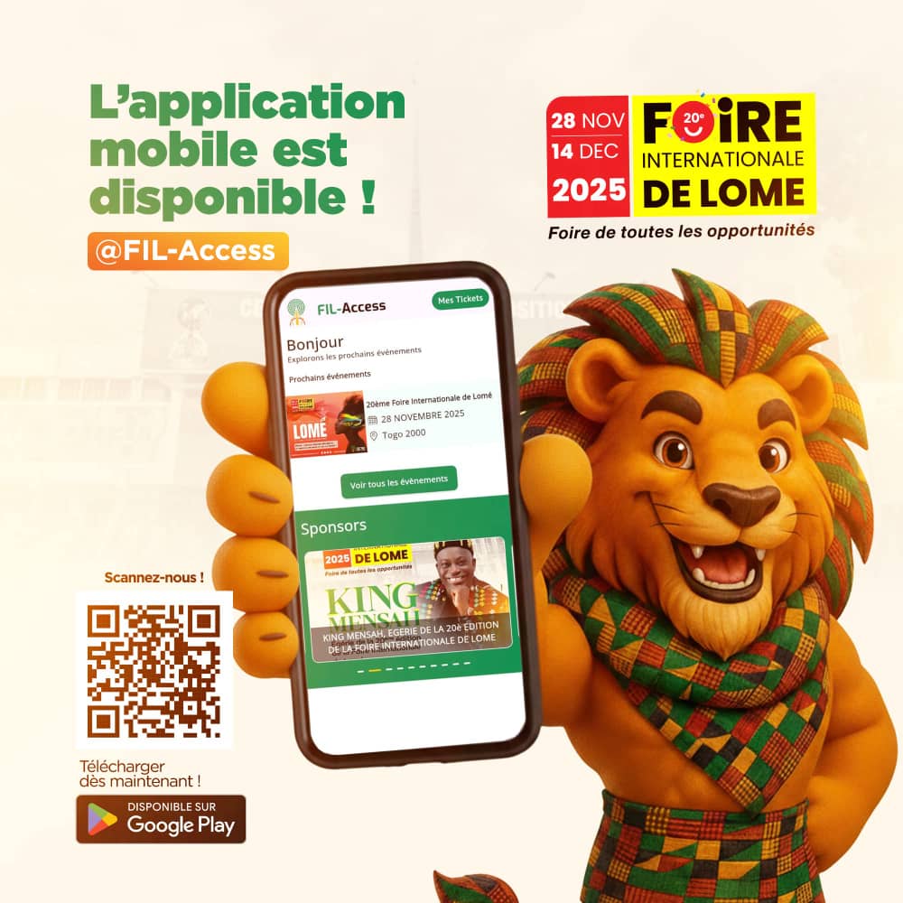 Avec l’application officielle de la Foire Internationale de Lomé, tout est à portée de main :🎟️ 𝐀𝐜𝐡𝐚𝐭 𝐝𝐞 𝐭𝐢𝐜𝐤𝐞𝐭𝐬 & 𝐜𝐚𝐫𝐭𝐞𝐬 𝐕𝐈𝐏 🗓️ 𝐏𝐫𝐨𝐠𝐫𝐚𝐦𝐦𝐞 𝐜𝐨𝐦𝐩𝐥𝐞𝐭 🔔 𝐀𝐜𝐭𝐮𝐬, 𝐛𝐨𝐧𝐬 𝐩𝐥𝐚𝐧𝐬 𝐞𝐭 𝐧𝐨𝐭𝐢𝐟𝐢𝐜𝐚𝐭𝐢𝐨𝐧𝐬 𝐞𝐧 𝐭𝐞𝐦𝐩𝐬 𝐫𝐞́𝐞𝐥