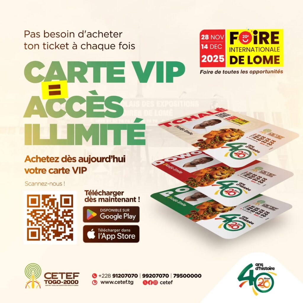 Les cartes VIP à la Foire Internationale de Lomé pour un traitement de Roi et un accès illimité au CETEF TOGO 2000