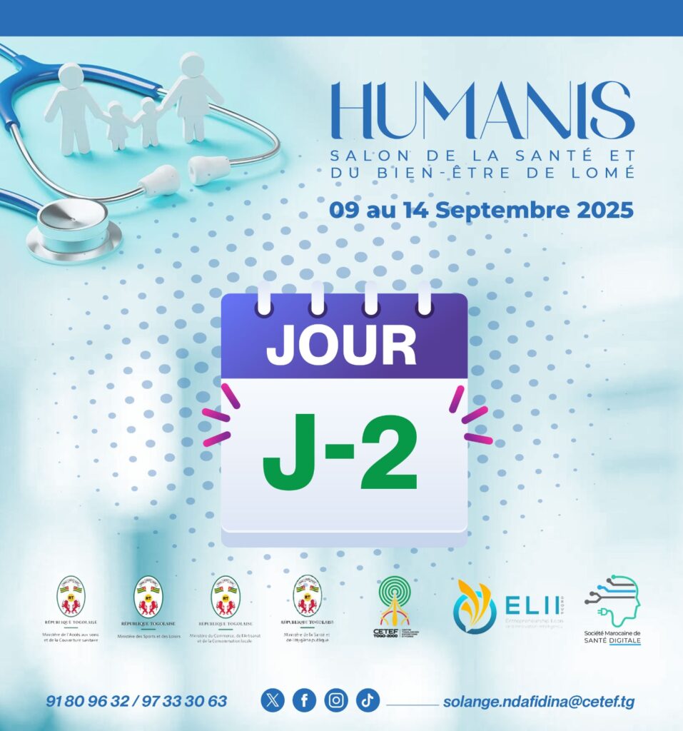 Du 09 au 14 septembre 2025, le CETEF TOGO 2000 se transforme en un grand hĂŽpital pendant 6 jours en accueillant la 1Ăšre Ă©dition du Salon de la SantĂ© et du Bien-ĂȘtre, sous l’Ă©gide du MinistĂšre du Commerce de l’Artisanat et de la Consommation Locale, et avec le parrainage des MinistĂšres de la SantĂ© et de l’HygiĂšne Publique, des Sports et des Loisirs et de l’AccĂšs aux Soins et de la Couverture Sanitaire.