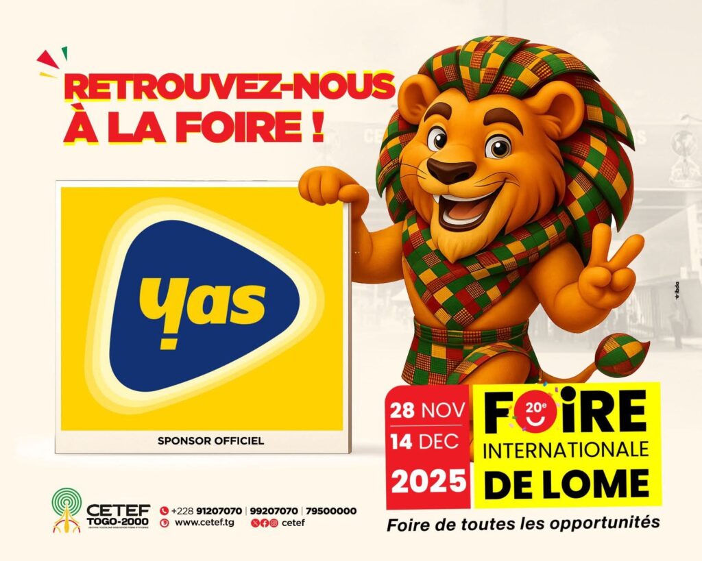 La Foire est fière d’annoncer @yas_togo comme sponsor officiel de sa 20ᵉ édition. 𝐔𝐧𝐞 𝐜𝐨𝐥𝐥𝐚𝐛𝐨𝐫𝐚𝐭𝐢𝐨𝐧 𝐦𝐚𝐫𝐪𝐮𝐞́𝐞 𝐩𝐚𝐫 𝐥’𝐢𝐧𝐧𝐨𝐯𝐚𝐭𝐢𝐨𝐧, 𝐥𝐚 𝐜𝐫𝐞́𝐚𝐭𝐢𝐯𝐢𝐭𝐞́ 𝐞𝐭 𝐥’𝐞𝐧𝐠𝐚𝐠𝐞𝐦𝐞𝐧𝐭 𝐚̀ 𝐨𝐟𝐟𝐫𝐢𝐫 𝐮𝐧𝐞 𝐞𝐱𝐩𝐞́𝐫𝐢𝐞𝐧𝐜𝐞 𝐭𝐨𝐮𝐣𝐨𝐮𝐫𝐬 𝐩𝐥𝐮𝐬 𝐫𝐢𝐜𝐡𝐞 𝐚𝐮𝐱 𝐯𝐢𝐬𝐢𝐭𝐞𝐮𝐫𝐬.